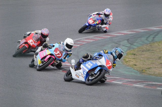 つぼっちーの前を走るのは#7レーシングサプライ角力斗雲 比企 徹選手、後は#52MOTO WIN RACING 川村 明選手ですね。