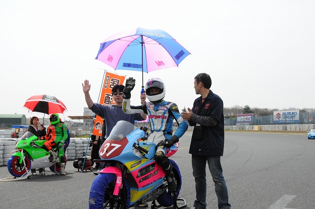 一人一人グリッドと選手の名前が呼ばれ、いよいよつぼっちーの名前がサーキット中に響きます。