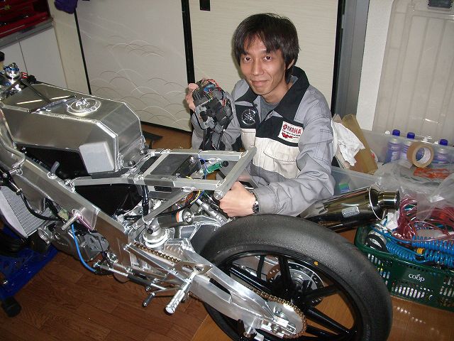 マシンの準備も順調です。写真はデータロガー取り付けに苦戦中のつぼっちーです。