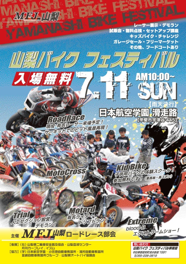 7月11日(日)に日本航空学園にて開催される「山梨バイクフェスティバル」につぼっちーが参加します!