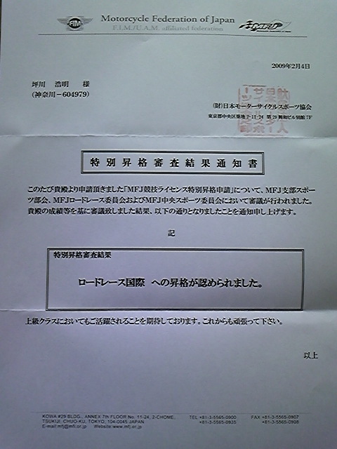 MFJサイトに、09年全日本ロードレース選手権シリーズの暫定年間エントリーリスト速報が載ってました。