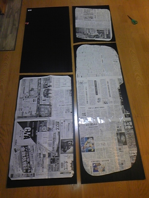 写真は、車のガラスに合わせて切ってきた新聞紙を