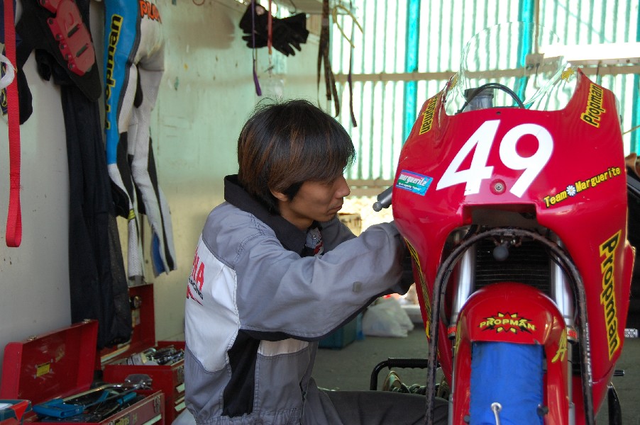 地面が傾いていない!(筑波のコース横のピットは斜めなんです・・・)