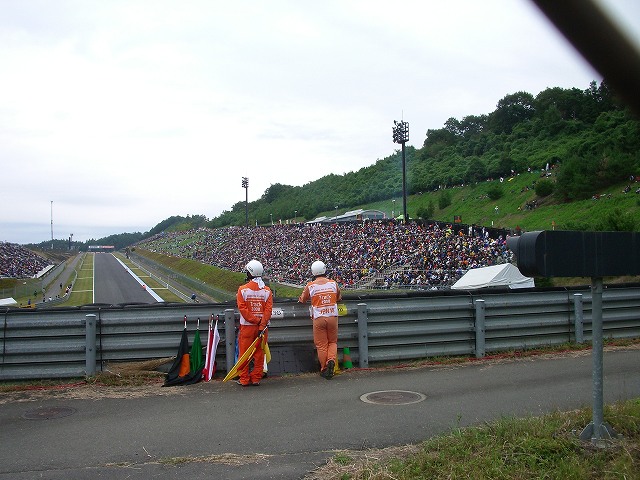 GP250とMotoGPは90°コーナーで観戦しました。結構人気の観戦スポットです。