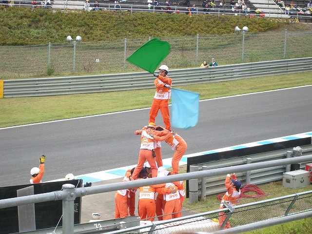 ちなみに90°コーナーのオフィシャルはサービス旺盛で、レースの合い間に組体操を披露してみんなを楽しませてくれます。