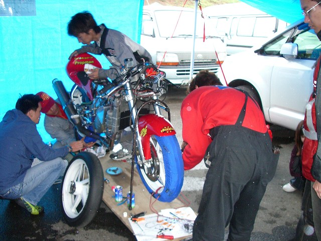 これを可能発想で具体的に考えれば、個人スポンサーの3000円/口でライダーの食事がカップラーメンからお弁当になり,企業スポンサーの10000円/口が集まれば今1台分しかないタイヤウォーマーがもう一台分準備でき、貴重な数周の練習走行の増加が可能となります。すなわち、企業様、個人スポンサー様の支援が直接目に見える形にてタイムアップに繋がっていくわけです。