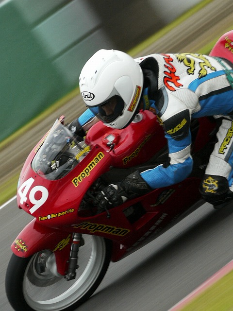 何のデータも持ち合わせず手探り状態でマシンを開発し、さらに独自にサーキットの攻略法を研究し、そして懸命に努力を積み重ねてライダーとしての技量を高めて行きました。
