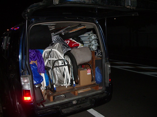 その隙間にテント、スペアタイヤ、スペアカウルやら発電機、工具などなど沢山の荷物が整然と積まれています。