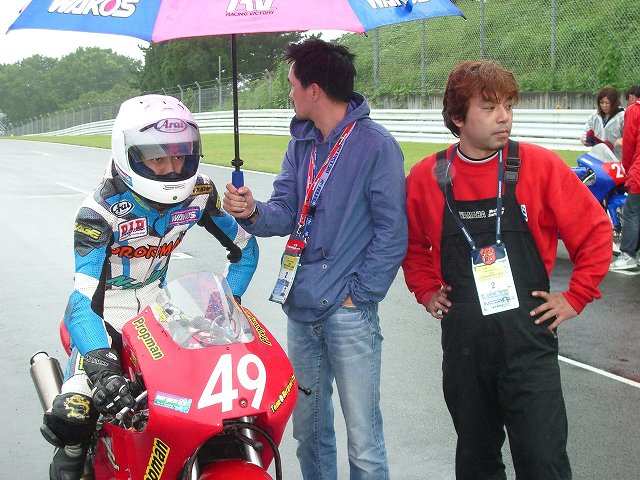 ウェットレースで転倒続出のなか、ホームストレートに無事帰ってくるのを毎周祈るように見守りました。