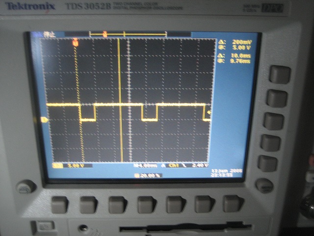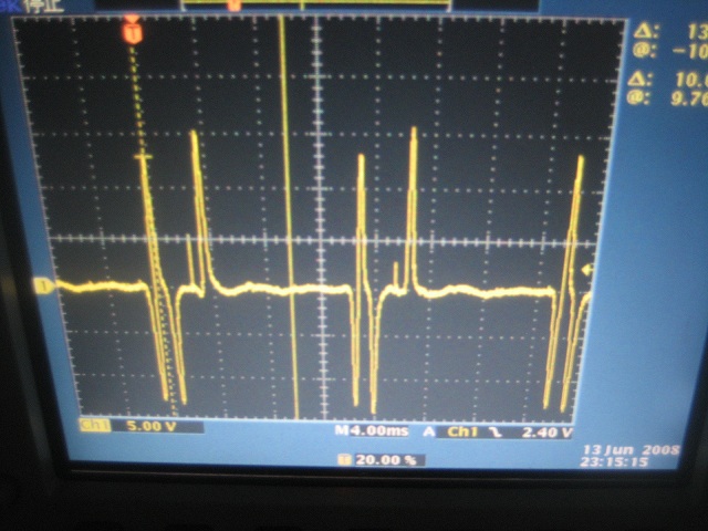 これが実際のエンジン波形を回路で半分にして出力した値です。実はこれでは動きませんでした・・・。