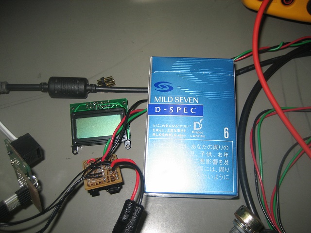 なかなか苦労の跡が見られます。今回の回路は過去に作った基板を再利用しているので、配線の修正が必要でしたのでごちゃごちゃしてます。今後時間があるときにでも、キレイに作り直すそうです。