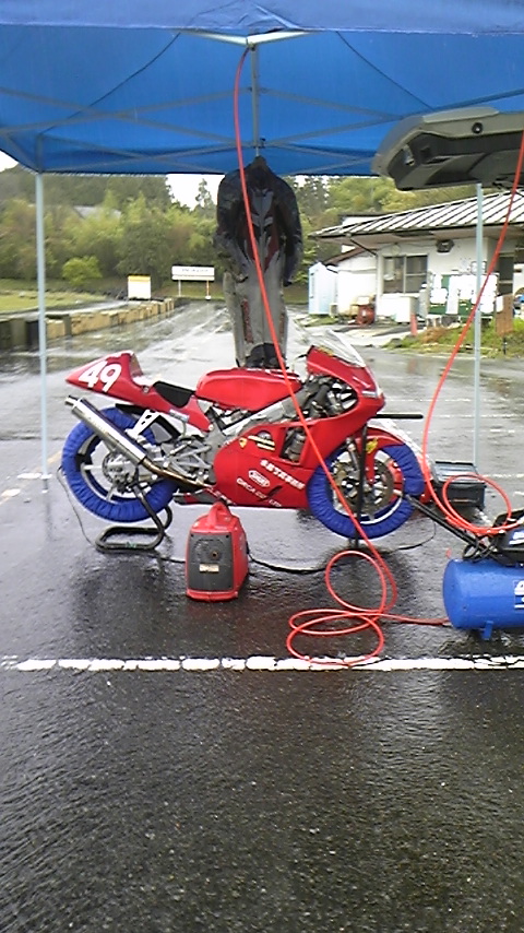 タイヤウォーマーを巻いて