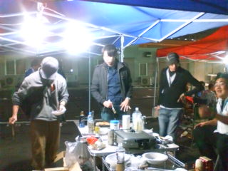 MONOライダーの皆さんがマーガレットのテントに集合して打ち上げパーティーをしてます