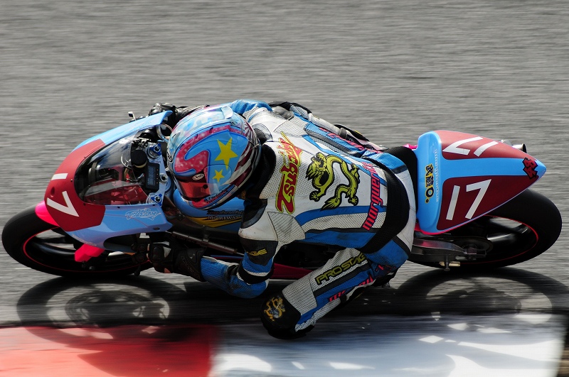 オープニングラップを3位で通過、その後自己ベストタイム1'40.5を刻みながら谷川選手と抜きつ抜かれつの壮絶な3位争いを展開しましたが、最終ラップのヘアピンで転倒、再スタートを切れずにレースを終えました。