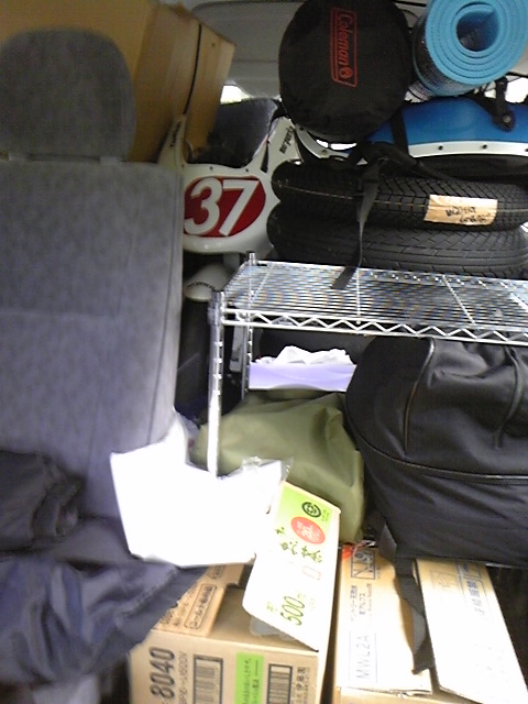 荷物満載のハイエースで