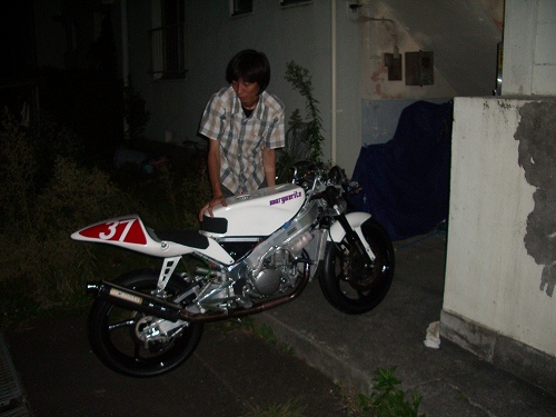 おかげで、つぼっちーが作業部屋からバイクを出すとこの写真も撮れました。