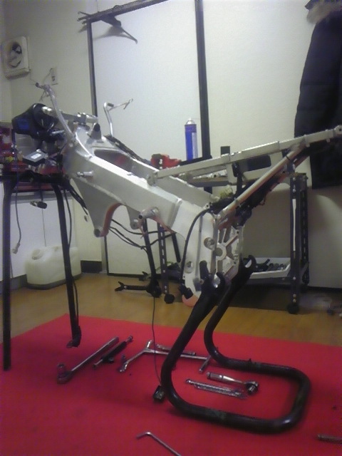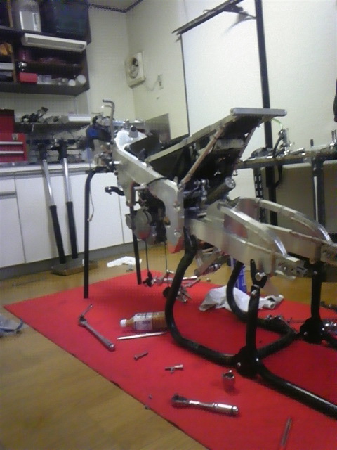今は奥にあるフロントフォークのオーバーホールをやっています