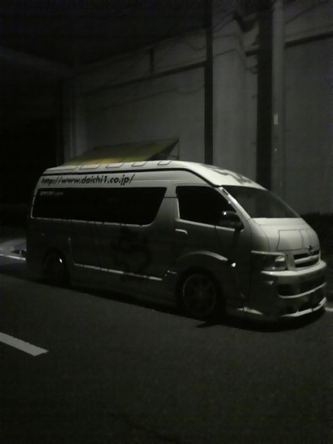 写真は夜に溶け込むハイエース。
