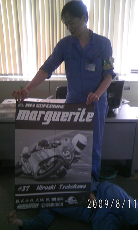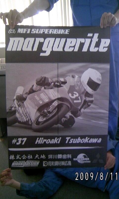 マーガレットでも(ライダーが)ステッカーの配布はしていましたが、次選のSUGOではポスターも飾ろうと作成中です!